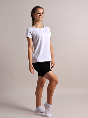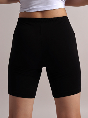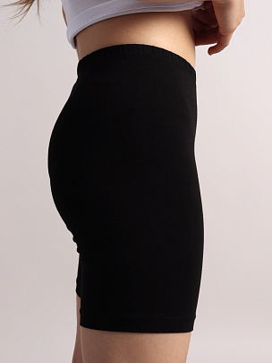Бриджи длиной выше колена, без боковых швов. Верхний срез обработан швом вподгибку, с предварительно притачанной резинкой.