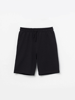 Шорты с лампасами. Пояс притачной, со вставленной внутрь резинкой. В пояс вставлен шнур.