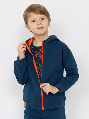 Костюм для мальчика (толстовка, брюки) индиго-оранжевый
