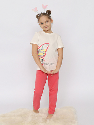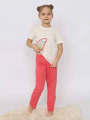 Пижама для девочки (футболка, брюки) экрю