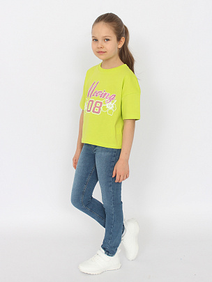 Футболка с ярким блестящим принтом для девочки, выполненная из мягкого хлопкового трикотажа, который прост в уходе, позволяет телу дышать и комфортен в носке. Актуальный крой оверсайз с заниженной линией плеча не сковывает движения, позволяя ребенку быть активным. Модель дополнена круглым вырезом горловины и свободными рукавами длиной до локтя.
