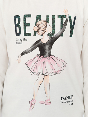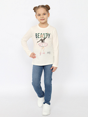 Лонгслив для девочки с длинными втачными рукавами. Перед джемпера декорирован принтом.