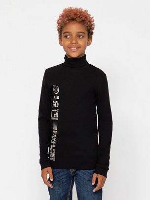 Водолазка для мальчика с воротником-стойкой, с отворотом. Рукава длинные с манжетами из основного полотна по низу. Перед водолазки декорирован принтом "Проследи свой путь".