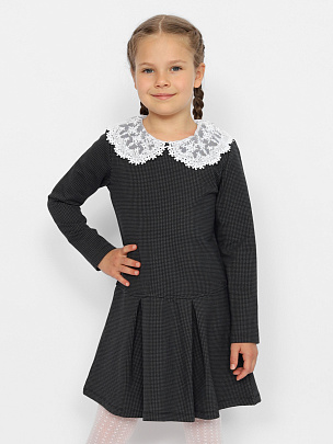 Платье для девочки с втачными рукавами 3/4. Воротник вязанный, отстегивающийся. Спинка со средним швом, в верхней части которого обработана застежка на пуговку.