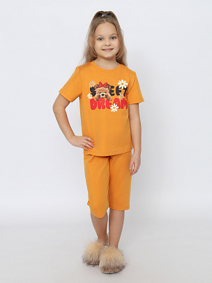 Пижама для девочки из футболки и шорт. Футболка оверсайз с круглой горловиной и короткими рукавами, свободного кроя с милым принтом. Шорты, без карманов из набивного хлопка, имеют удобную посадку, благодаря широкому эластичному поясу. Изделие изготовлено из мягкого и приятного на ощупь полотна. Пижама с шортами - это удобная и универсальная домашняя одежда, в которой можно спать, но и провести весь выходной.