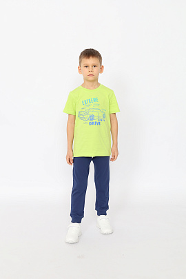 Футболка с коротким рукавом. Горловина круглая, обработана узким воротником из полотна с эластаном. Перед оформлен принтом.